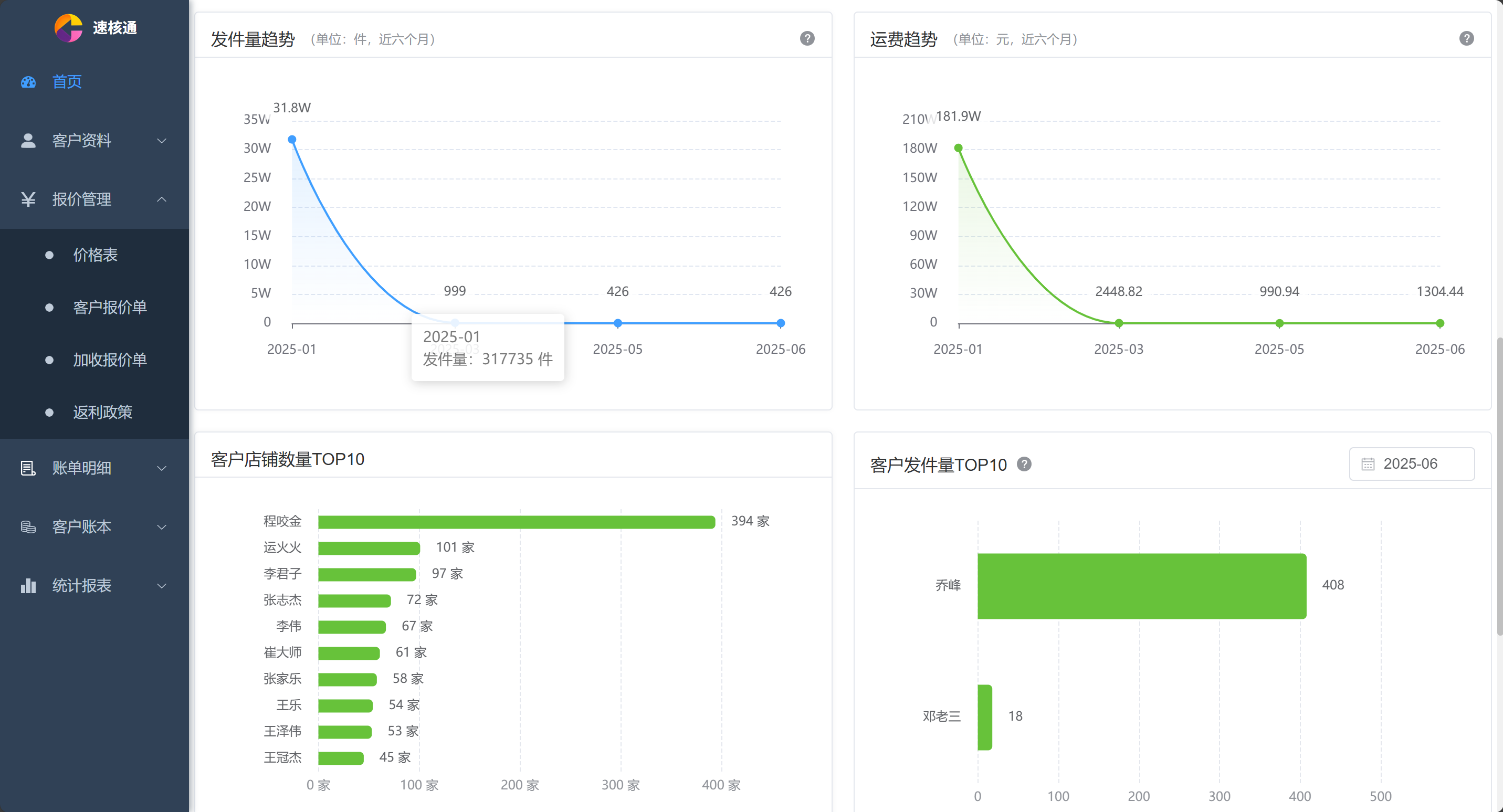 发件量、运费趋势图等